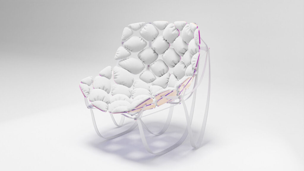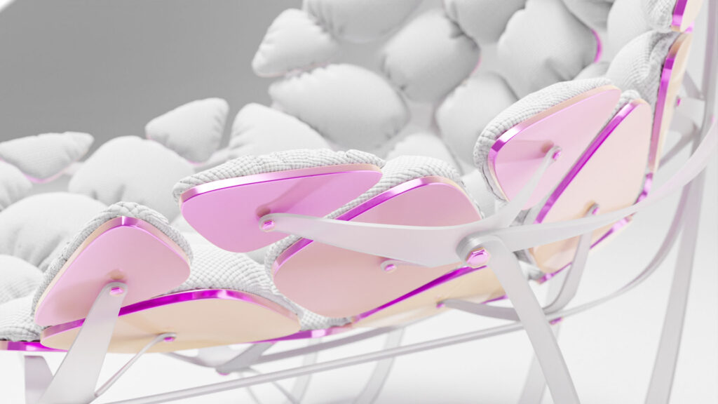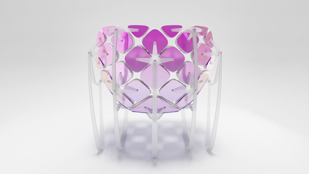 Iridescent is a revolutionary new concept chair that combines innovative materials and design to create a truly unique seating experience. The chair is made with a strong and lightweight honeycomb structure, which provides a supportive and comfortable base for the user. The real highlight of the Iridescent chair, however, is its shimmering iridescent metal finish, which creates a stunning visual effect that will brighten up any space. The iridescent metal reflects light in a rainbow of colors, adding a touch of magic to the overall design. The result is a chair that is not only functional and comfortable but also visually stunning, making it a perfect addition to any modern home or office.